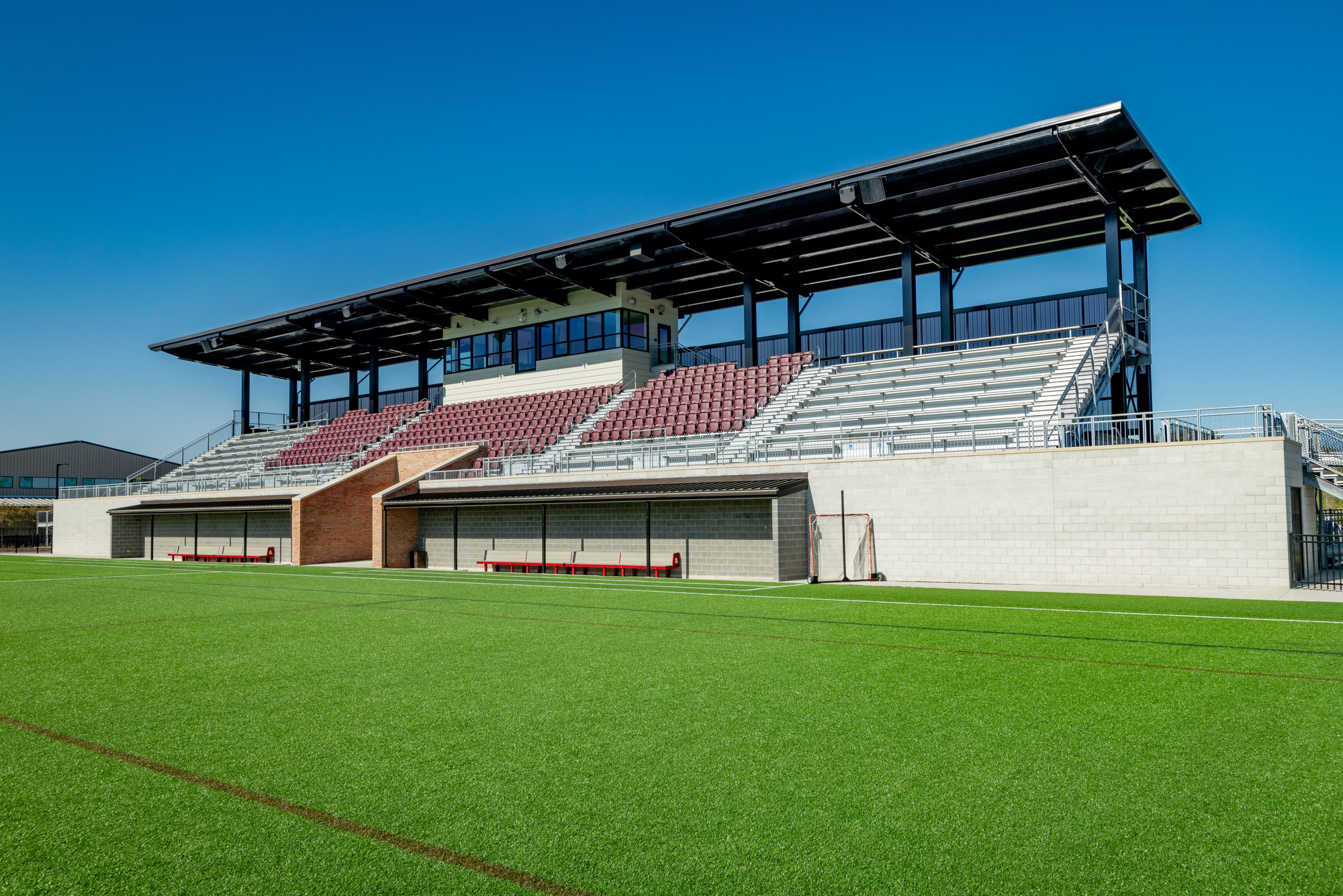 The new stadium is designed to seat 850 spectators with field lighting, restrooms, concessions, pressbox, ticketing and team locker rooms. The inclusion of covered seating was another important element that creates a high-end fan experience. The University wanted to create a connected student experience through athletics that elevates Calvin’s programs both regionally and nationally. The stadium’s design is distinctive and collegiate while staying true to the prairie style architecture displayed around the University campus. Branded team rooms at Zuidema Stadium create a ‘third space’ for students, complementary to their education and living spaces, and provide a connected sense of belonging for student athletes.