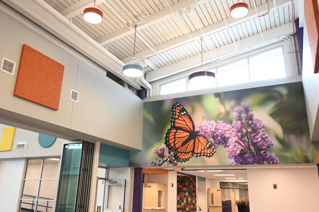 Carrying the mascot of the Monarchs, the building features colorful butterfly motifs throughout to represent beauty, growth, and greatness. Like its namesake, Mitchell Elementary embodies the belief that with care, creativity, and community, students can soar.